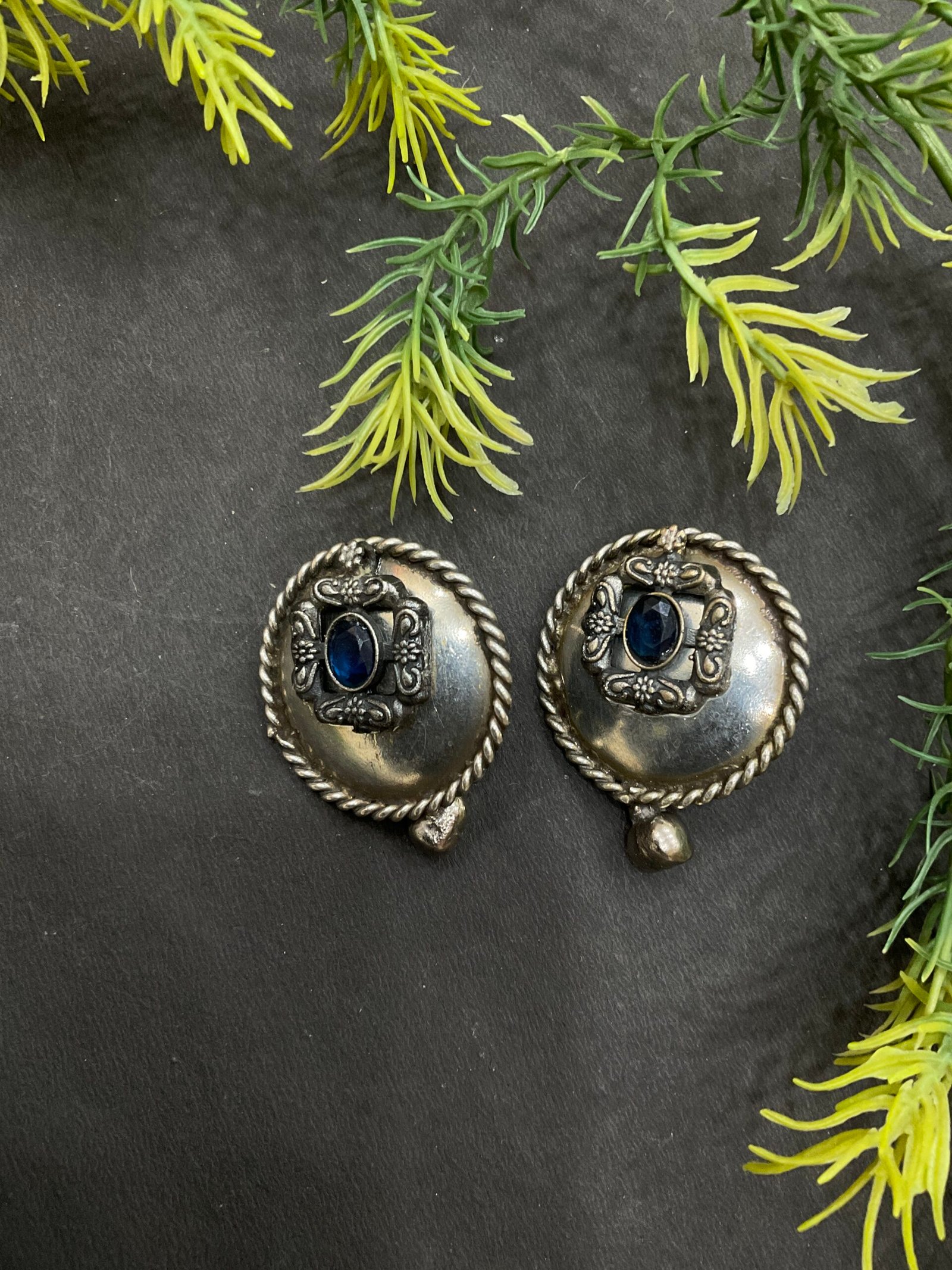 The matching earrings are round in shape and designed with the same antique silver finish and black stone detail. Their simple yet elegant look perfectly complements the necklace and creates a balanced set. This silver look alike choker set is perfect for festive occasions, traditional functions, casual ethnic wear, and special gatherings, adding a timeless and sophisticated touch to your overall style.