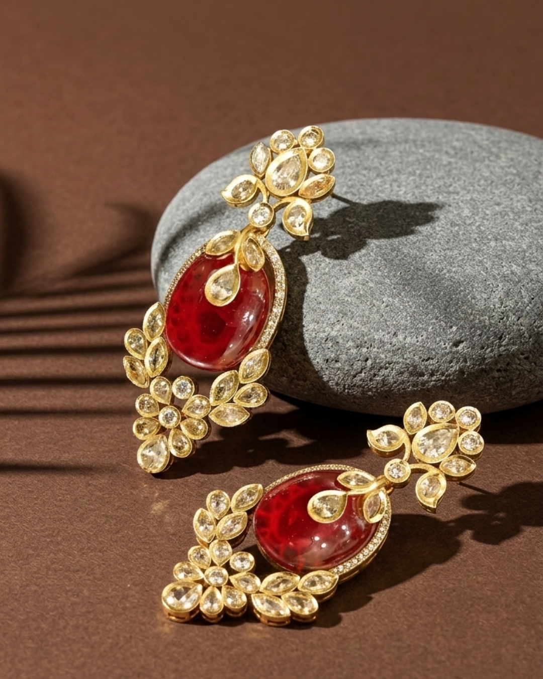 - Central Stone Focus: A bold red oval stone acts as the focal point, giving a royal and eye-catching appeal.