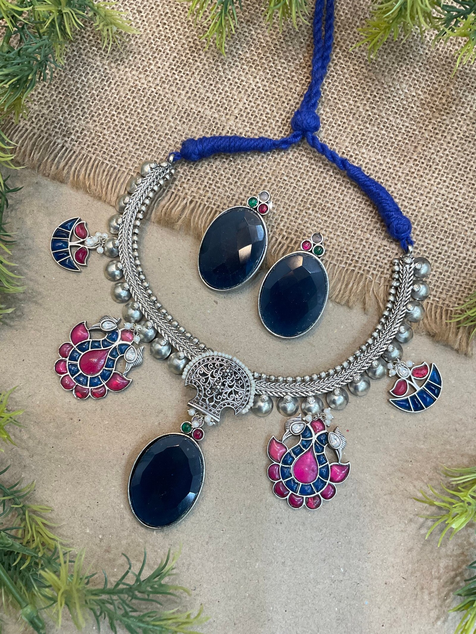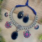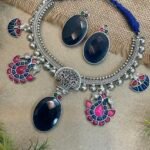 This necklace set pairs wonderfully with sarees, lehengas, and ethnic outfits, adding a graceful statement to your overall look. Its artistic design and timeless charm make it a special addition to any jewelry collection for those who love elegant traditional jewelry.