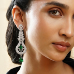 At the bottom, a larger green teardrop-shaped stone hangs gently, creating a lovely finishing touch. This moving drop adds extra charm and elegance when you walk or move.