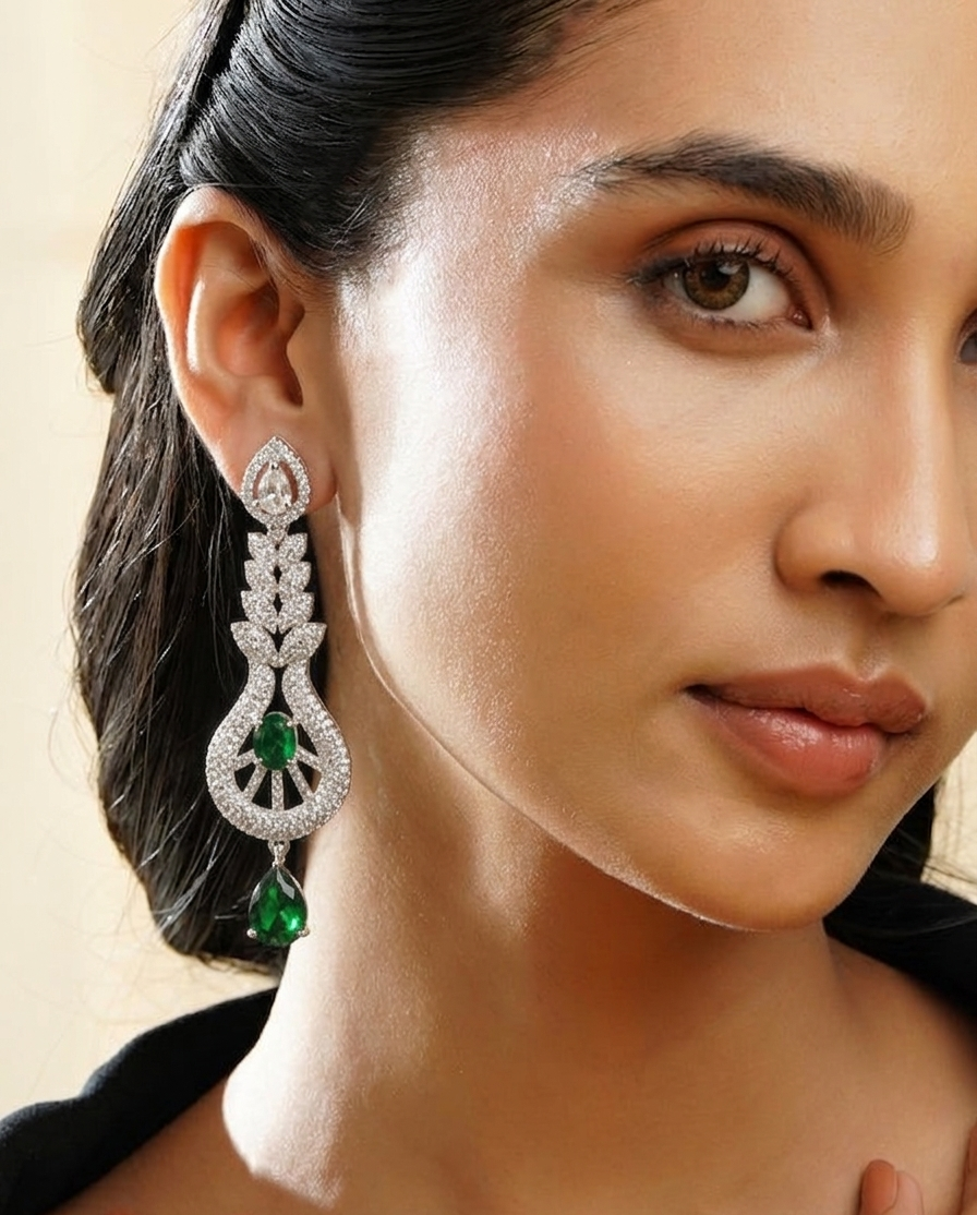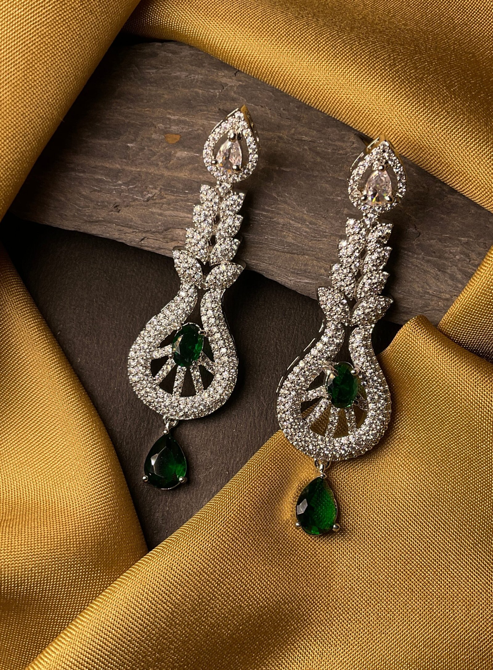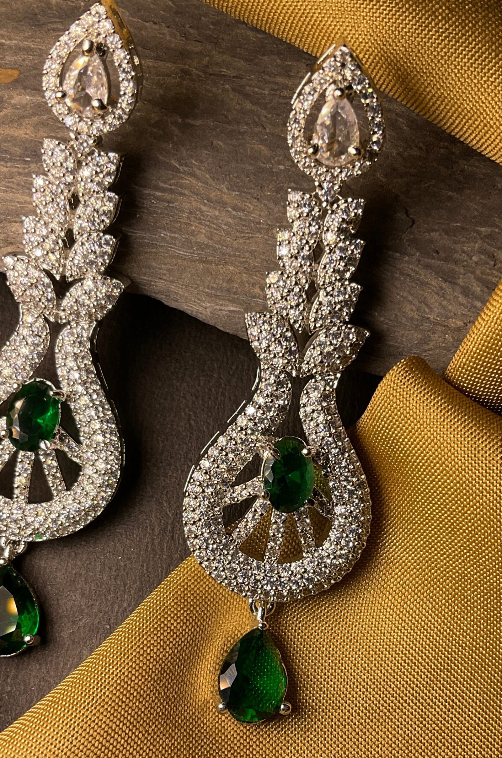 This American diamond earring has a long and elegant design that looks very graceful when worn. It is perfect for adding a rich and stylish touch to any outfit.
