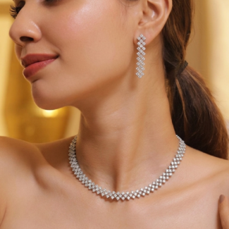 This necklace set is perfect for special occasions like weddings, parties, or evening functions. It pairs very well with both traditional and modern outfits, adding a touch of luxury and charm to your overall appearance.