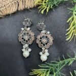 The matching earrings are designed in the same floral pattern with pearl drops that perfectly complete the set. Their elegant design adds balance to the necklace while maintaining a refined traditional look. This silver necklace set is perfect for festive occasions, family gatherings, celebrations, and ethnic wear, making it a wonderful choice for women who love jewellery that feels both elegant and unique.