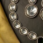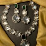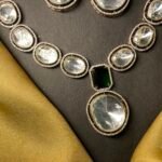 At the center of the necklace, there is a bold green rectangular stone that stands out beautifully. This green stone adds a touch of color and gives the necklace a royal and traditional feel. Below it, there is a big oval pendant that becomes the main highlight of the necklace. It is large, eye-catching, and perfect for special occasions.